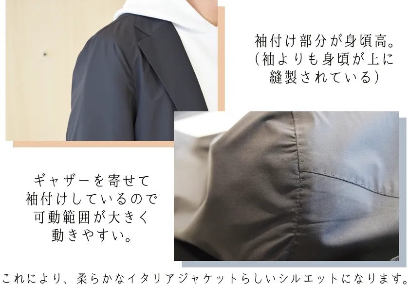マニカ袖はイタリアジャケット好きにはたまらない、こだわりのデザインです。