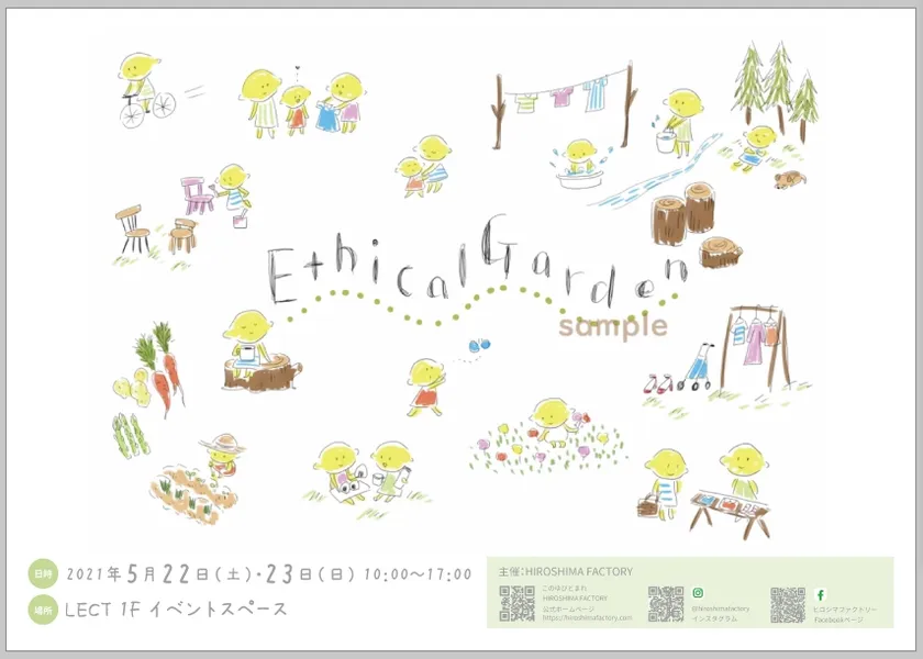 HIROSHIMA FACTORY(拠点:広島県三次市、代表:川ノ上 智子)は、広島県では初となる“エシカル”をテーマにしたイベント「エシカルガーデン」を広島市西区「LECT」にて2021年5月22日(土)・23日(日)に開催いたします。