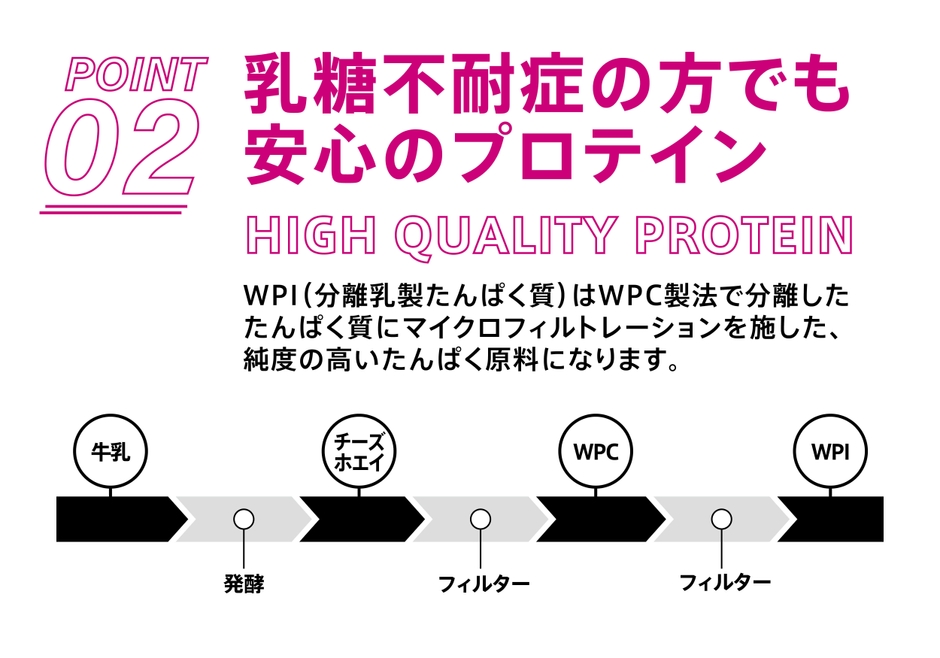 【Point2】乳糖不耐症の方でも安心のプロテイン