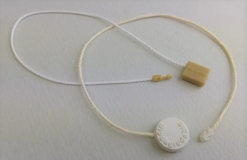 ロゴマークなどを表示した樹脂チャームと紐を一体化した『BM-LOX』に新しい仕様を加えました。新たな材料として「自然由来の綿糸とPLA樹脂(生分解性)」や「リサイクル材から生産された糸と樹脂」の組み合わせを採用可能にし、お客様のサスティナブルやSDGsに向けた取り組みにも貢献いたします。