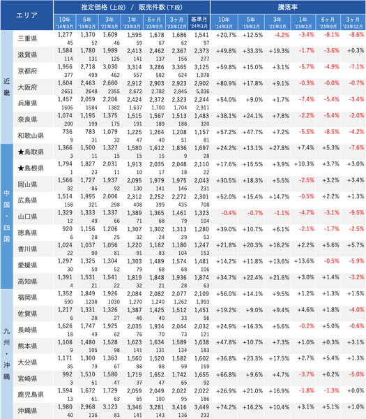 ・騰落率:1位「和歌山県」+47.7%、2位「滋賀県」+33.3%