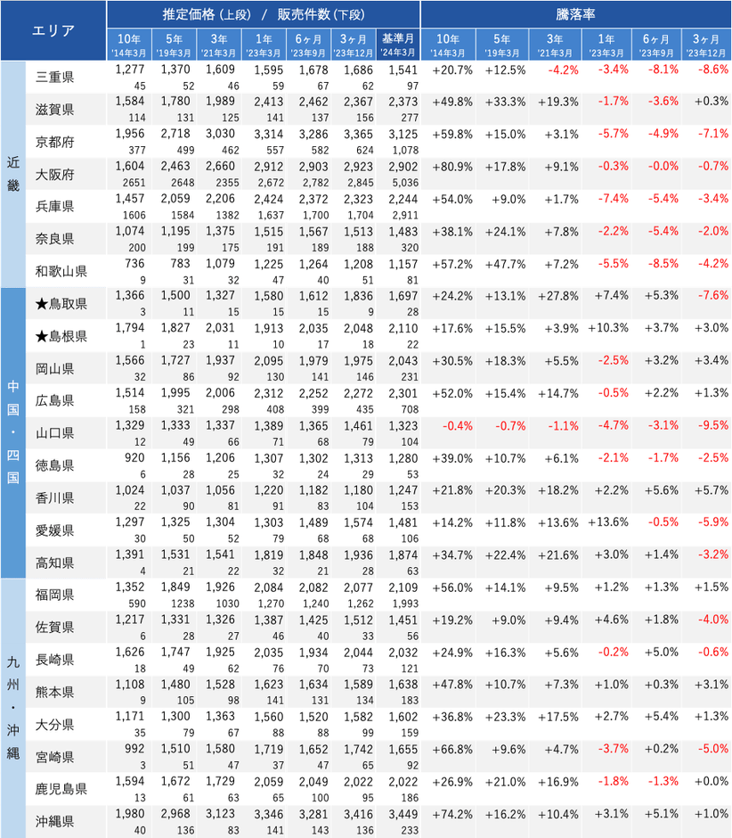 「マンションレビュー」2024年 3月 全国中古マンション相場推移を発表