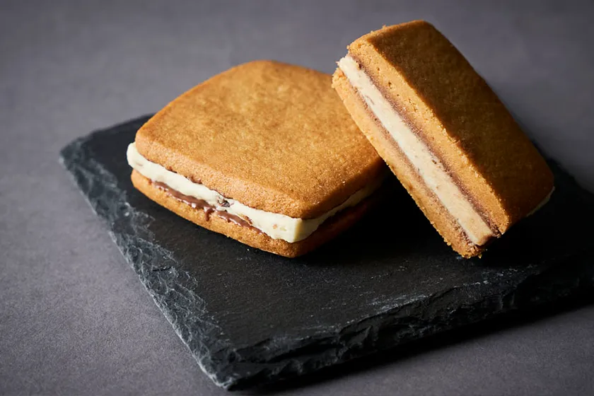 サクサクに焼き上げたキャラメルサブレでサンド。
