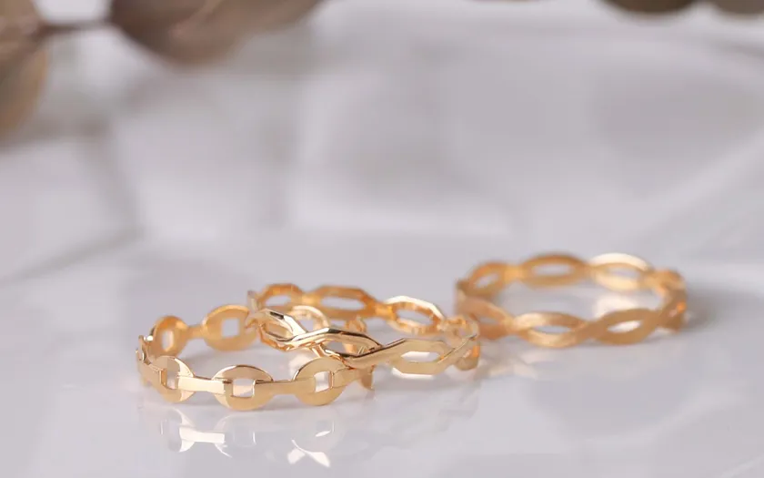 アンティークのウェディングリングをモチーフに、現代版アレンジしています。レイヤードコーデでヘビロテ必至で、オシャレレベルをグッと引き上げます。
