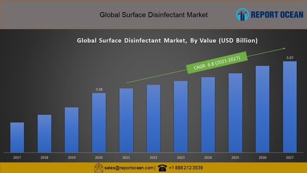 世界の表面消毒剤市場は、2020年に35億8,000万米ドルの市場規模があり、CAGR 6.8%の割合で繁栄しています。2027年には59.7億米ドルの市場規模に達すると予測されています。表面消毒剤の需要は、院内感染(HAI)の増加などの要因により進んでいます。その結果、人々や医療施設の衛生意識が高まっており、これが予測期間中の表面消毒剤の需要を促進すると考えられます。さらに、バイオベースの表面消毒剤など、環境に配慮したソリューションへの需要が高まっていることも、多くの国で業界の成長を後押ししています。