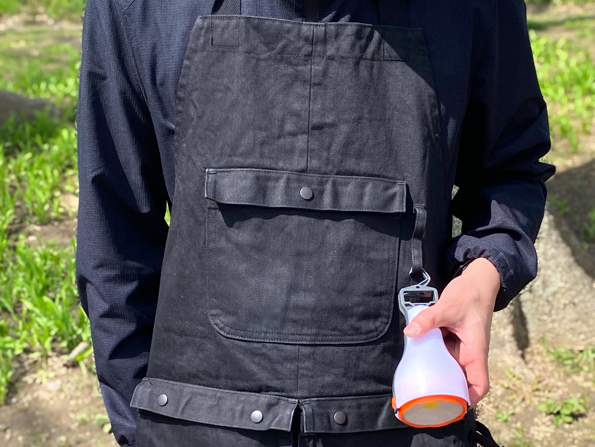 【岡山デニム × アウトドア】岡山デニムをアウトドア仕様に。14種類の機能を搭載した、焚き火に強いデニムエプロン。