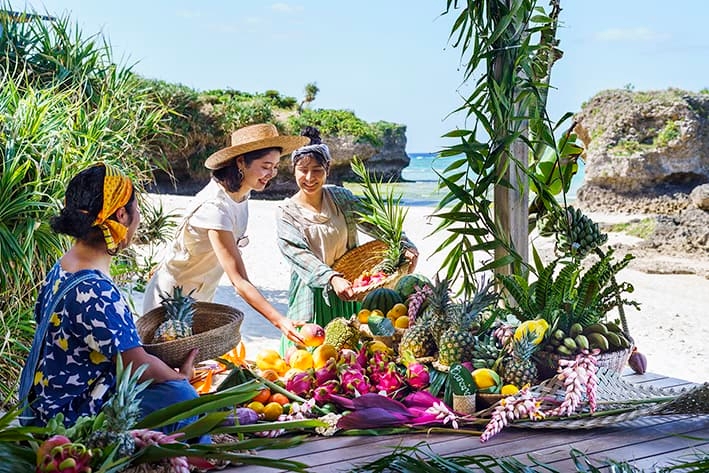 沖縄県では、亜熱帯の気候と隆起珊瑚の独特の土壌を活かし、パイナップルやマンゴー、バナナなど「トロピカルフルーツ」と呼ばれるさまざまなフルーツが生産されています。暑い夏の到来とともに多くの品種が収穫のシーズンを迎え、木成りで熟してから収穫されるフルーツは、その強い甘みと濃厚な味わいが特長です。真夏の沖縄で、南の島らしいフルーツを味わってほしい、生産者のこだわりを知ってほしいという思いからイベント開催にいたりました。