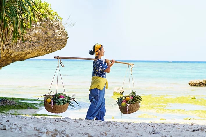 マチヤーグワァーとは沖縄の方言で「商店」のこと。カゴいっぱいのトロピカルフルーツを並べた「浜辺のマチヤーグワァー」では、その日が食べごろのフルーツの他、3日後、5日後などに食べごろになるフルーツも並びお土産に最適です。対面販売の商店では店主に美味しさの見極め方や、おすすめのレシピを聞くなど、おしゃべりを楽しみながらフルーツについて知ることができます。