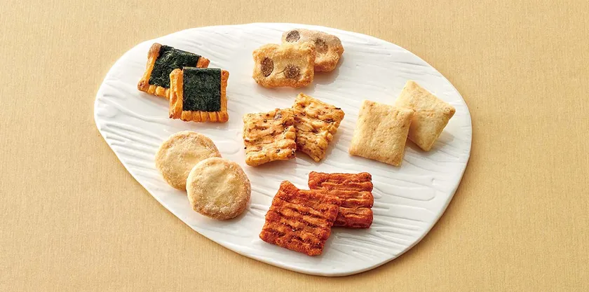 鰹と昆布の2種のだしの旨味を感じるおかき