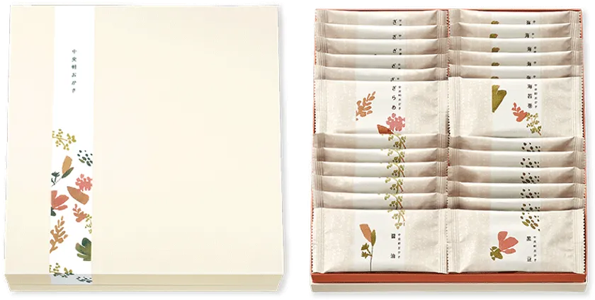 1枚1枚食べ応えのある同じサイズのおかきと個包装で配りやすく、どんなシーンでも使える間違いのない安心感を提供します。