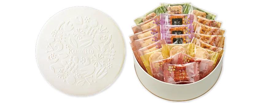 プチシリーズは、「Kumitte(クミッテ)」「中央軒おかき」「花色しおん」「Risocotti(リゾコッティ)」から、それぞれ手のひらサイズに詰め合わせ、お客様のお声に寄り添って誕生した商品です。
