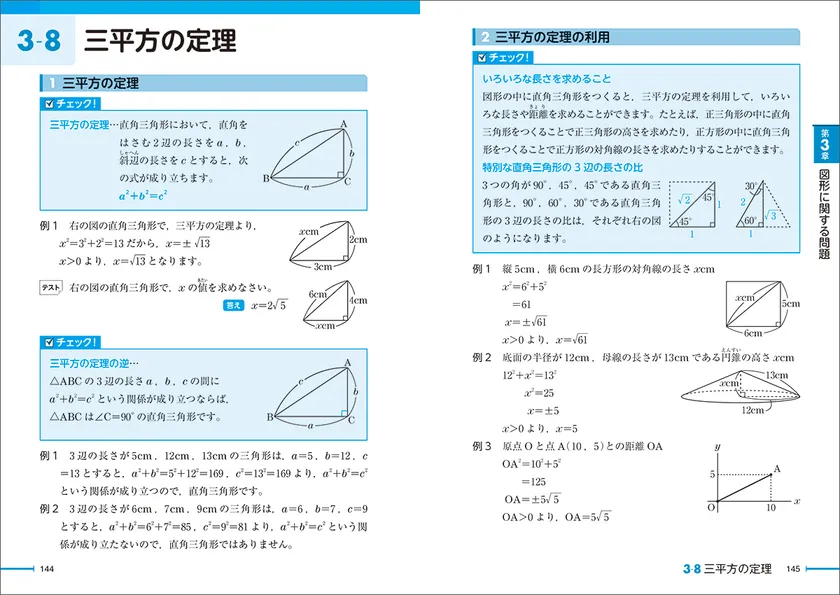 2021年度から、全国の中学校で新しい学習指導要領による教育課程が実施されています。中学校数学では、中学2年から中学1年へ「多数回の試行によって得られる確率」が移行したり、中学2年で「四分位範囲」「箱ひげ図」を新設したりするなど、「データの活用」領域に関する変更が多くなっています。本書は、この新しい学習指導要領に合わせて再編集されており、参考書と問題集が1冊にまとまっているので、「数検」合格に向けた学習はもちろん、学校の授業の予習・復習や、ゴールデンウィークなど連休中の自宅学習にもご活用になれます。