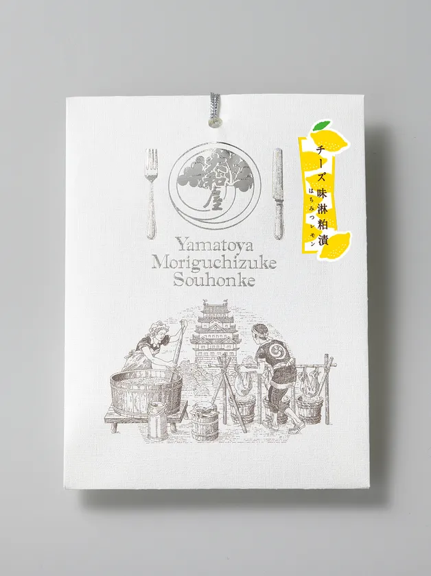 夏期限定商品の「チーズみりん粕漬はちみつレモン味」は、長年培ってきた守口漬の漬ける技を、チーズのお漬物として生かした商品です。