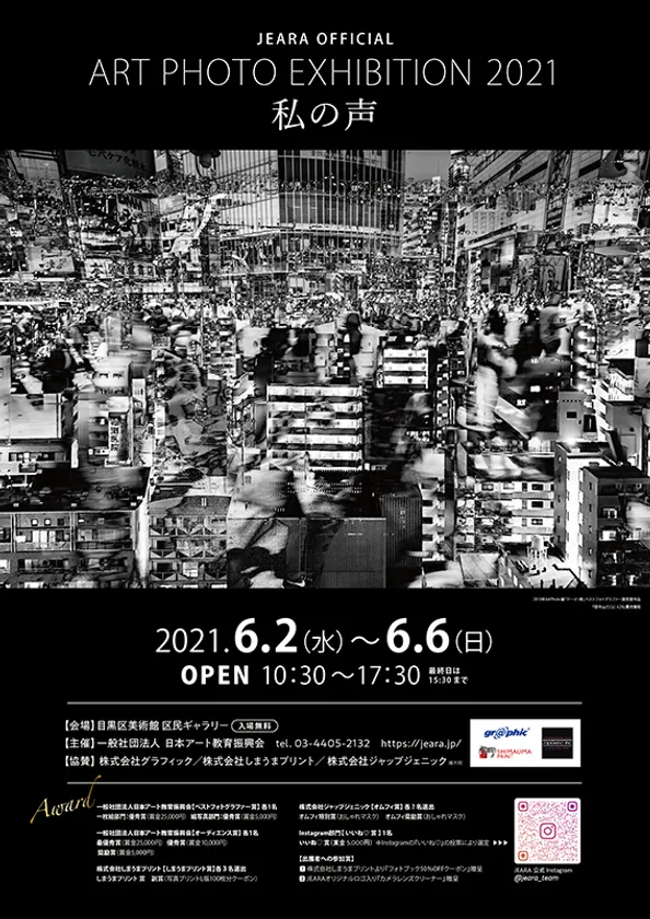 一般社団法人 日本アート教育振興会(所在地:東京都港区、代表理事:三尾 洋介)は、2021年6月2日(水)~6日(日)の5日間、東京(目黒)の目黒区美術館区民ギャラリーにて『ART PHOTO展(アートフォト展)2021「私の声」』を開催します。入場は無料です。