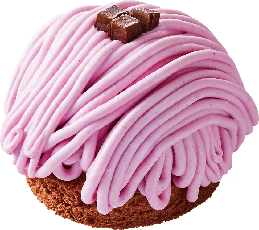 紫のコロンとした形が可愛いモンブラン。ブルーベリーの果汁を使用したクリームの中には、熊本県産のブルーベリーソースとチーズホイップが隠れています。角切りチョコレートが味と食感のアクセント。コク深いチーズホイップと甘酸っぱいブルーベリーの相性が抜群です。