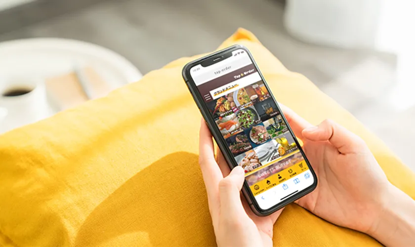 QRコードを読み込み、お客様のスマートフォンからご注文いただく仕組みを採用することで、端末代金で膨らみがちな初期費用を抑え、今まで以上にセルフオーダーシステムを身近なものにしました。