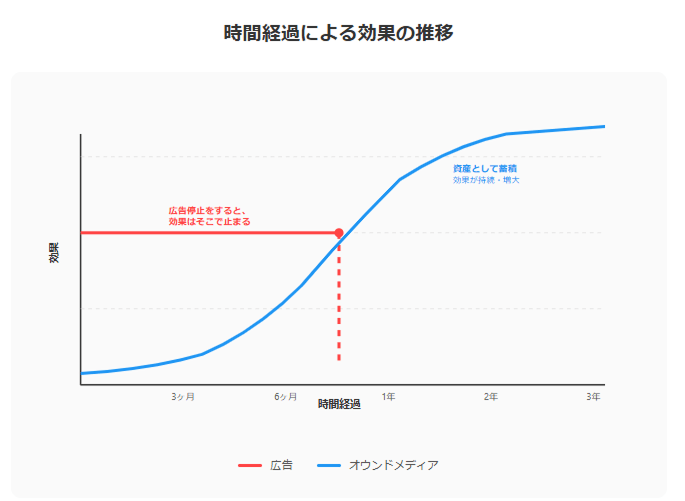 広告のように費用をかけて一時的に露出を増やすのではなく、良質なコンテンツを継続的に発信することで、顧客との長期的な関係構築を目指します。検索エンジンからの自然流入が期待できるため、中長期的には広告費を抑えながら安定的な集客が可能になるという特徴があります。