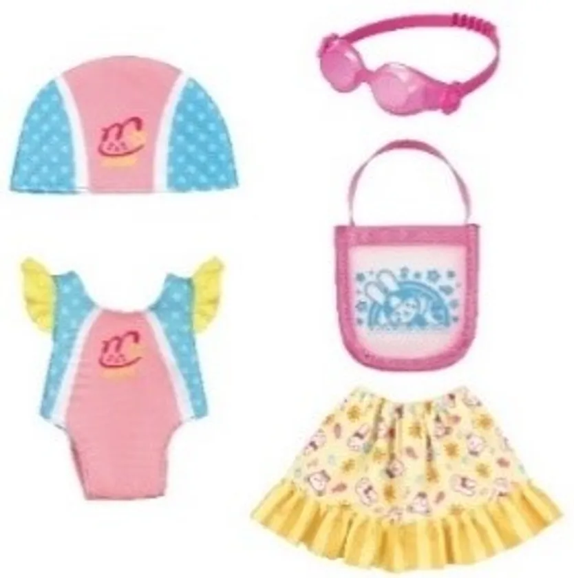 ◇「わくわくスイミングセット」は、水着だけでなくゴーグルやタオルもついた着せ替え服のセットです。お子様の習い事で人気の高いスイミング。水着とスイムキャップのおしゃれでかっこいいデザインが◎。メルちゃんだけでなく、ネネちゃんやお友達にも着用できます。ゴーグルや水着、タオルなど全てバッグに収納できるのでお片付けもバッチリです。