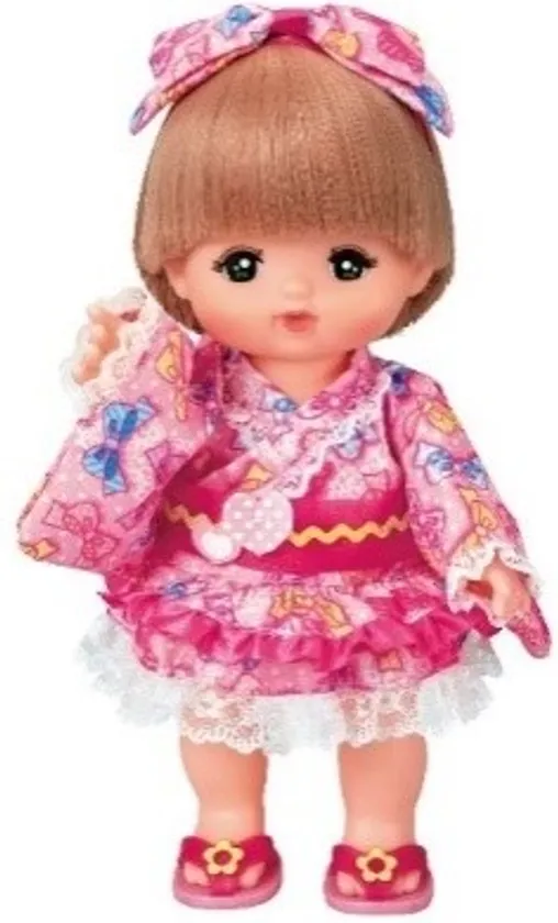 ◇「ゆかたドレス」は、かわいいリボン柄の着せ替え服です。着せ替えがしやすいよう、ドレスはトップスとボトムスが分かれています。ヘッドドレスがついているので、ヘアアレンジをして楽しむこともできます。「わくわくスイミングセット」同様に、メルちゃんはもちろん、ネネちゃんやお友達も着用できます。