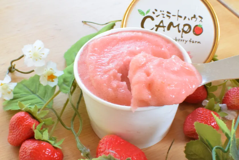 いちごの里のジェラートの美味しさの秘密は、全て自社農園で製造していることにあります。フレッシュないちごを使用し、自社内で製造をすることによってより早くお客様にご提供ができ、よりおいしくお召し上がりいただくことができます。