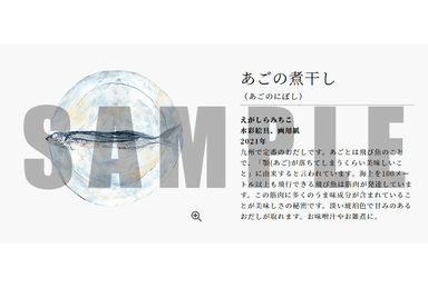 とある家族が「丘の上のおだし屋さん(=おだし香紡)」を訪れ、多種多様な出汁に出会うというストーリーのWEB絵本に仕上げています。絵画は拡大表示が可能で、出汁の魅力を伝えるキャプション(説明文章)も添付しています。活動自粛が求められる中、おだし香紡で開催される展覧会に参加するかのような体験をご提供します。