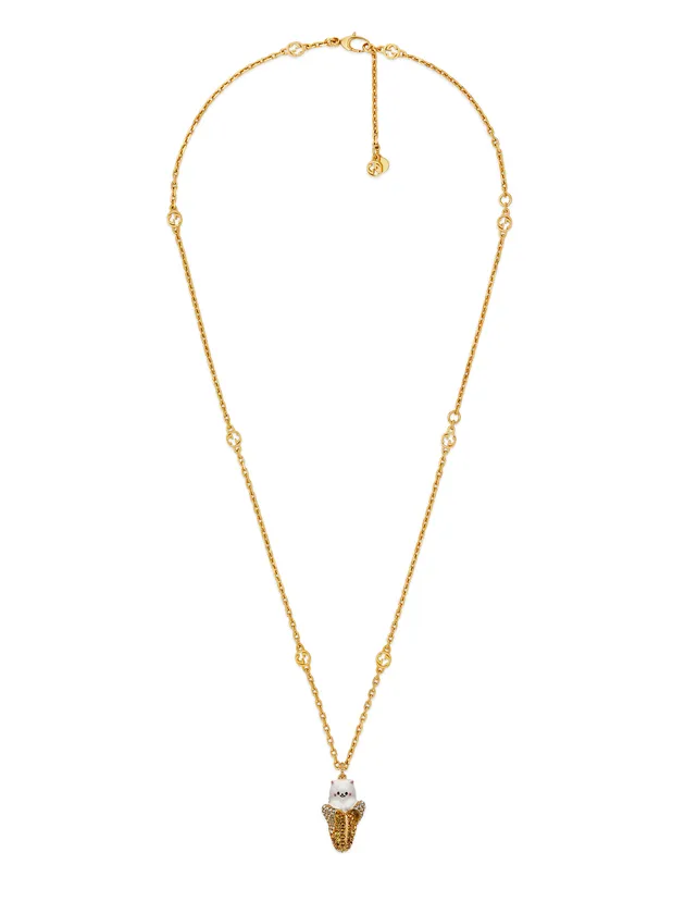 ・ゴールド仕上げのメタルネックレスに「ばなにゃ」のペンダントトップ(クリスタルとエナメル)をあしらったもの1点