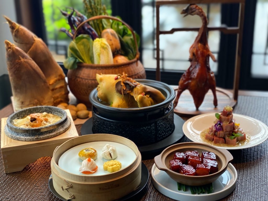 ダイニングのコンセプトは「和心漢菜」です。この言葉には、伝統的な中国料理に「和」の四季、美感、おもてなしの心を掛け合わせる、という意味を込めました。経験豊富な日本人料理長が、盛り付け、温度、食感、味付けにこだわり、中国の食文化のよさを引き出します。朝食には和・洋・中から選べるメインのセットに加え、ドリンクやフルーツのビュッフェを提供します。夕食はアラカルトメニューです。浙江省には南宋時代に都が置かれていたことから、多くの料理人が集められました。また、東シナ海の豊かな海産物や内陸部の多種多様な野菜など、食材にも恵まれており、独自の食文化が発展してきました。そうした浙江省の郷土料理をはじめ、本格的な日本料理など豊富なメニューを用意しています。