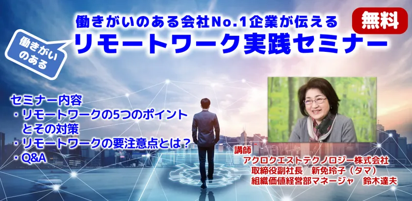 リモートワークで社員がイキイキ働ける会社づくりを伝授! 働きがいNo.1企業アクロクエスト、 経営層向け無料オンラインセミナー5/27開催