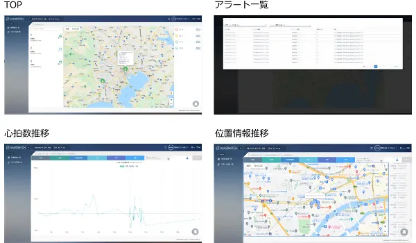 『ミマモルメウォッチ』は、皮膚温度、心拍数、血中酸素レベル、推定血圧、GPSによる位置情報を一定間隔で測定。本体に内蔵したSIMカード(LTE対応)で送信することにより、体調異常や着用状況などをまとめて遠隔で見守ることができます。スマートフォンを併用することなく、工場や建設現場における熱中症リスクのモニタリングや、装着者の安全確認、出退勤状況や活動量(歩数)の把握ができるほか、事前登録した電話番号に自動でつながるSOS機能も搭載しています。