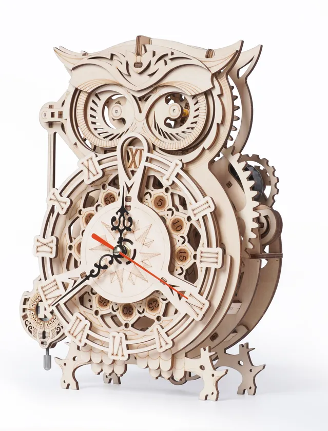 大人気シリーズDIYクラフトキット「つくるんです(R)」から “史上最高難度”の3Dウッドパズル 「フクロウ時計」を4月下旬に新発売!