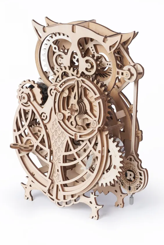 「フクロウ時計」は、ゼンマイから組み立てて一つの時計を作っていくため、他の3Dウッドパズルと比較して作業工程が多く、難易度の高い3Dウッドパズルとなっています。コツコツとした作業に没頭したい方や、機械やプラモデルなどが好きな方にぜひ挑戦していただきたい3Dウッドパズルです。