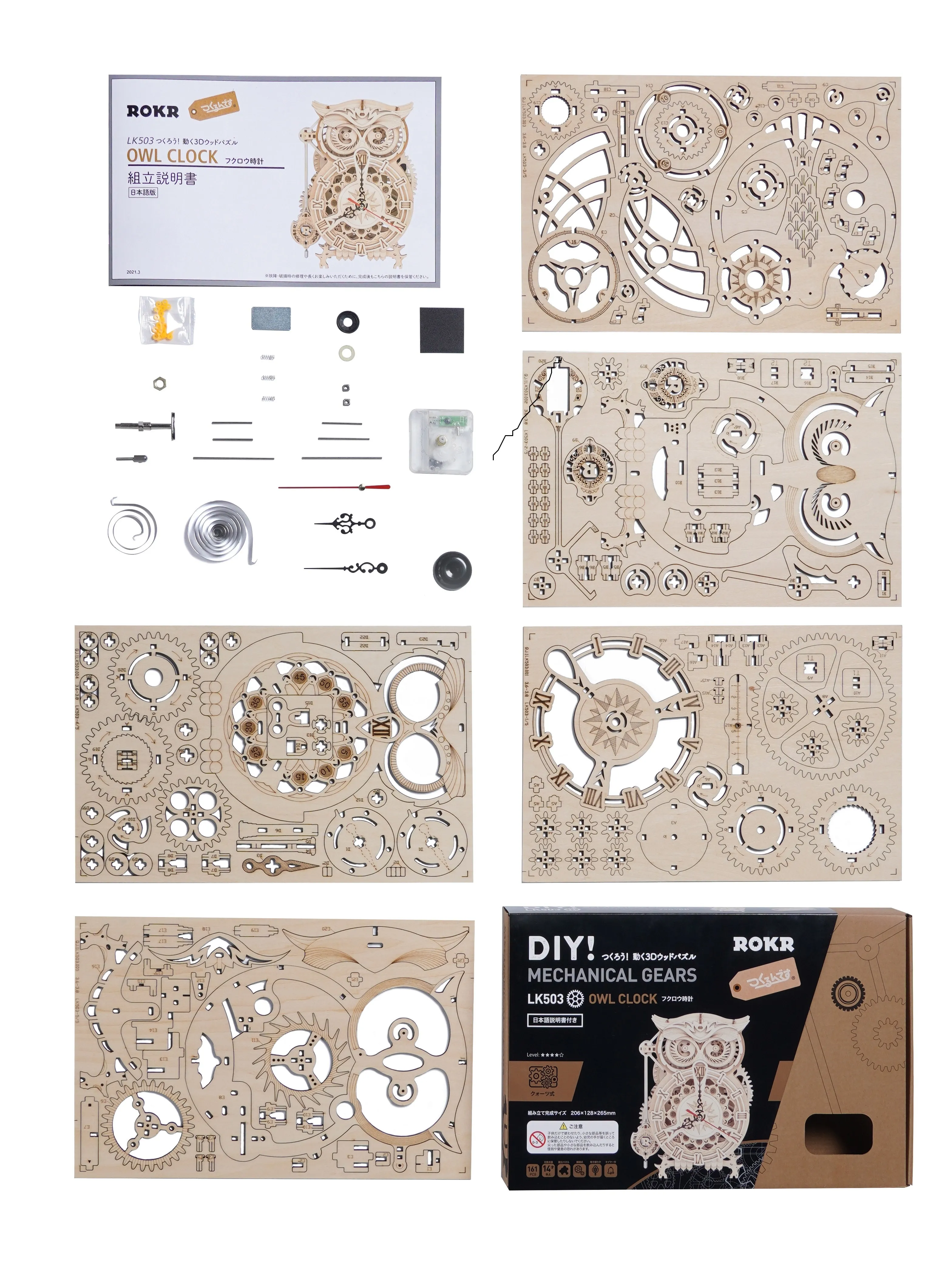 商品名 :3Dウッドパズルシリーズ LK503フクロウ時計