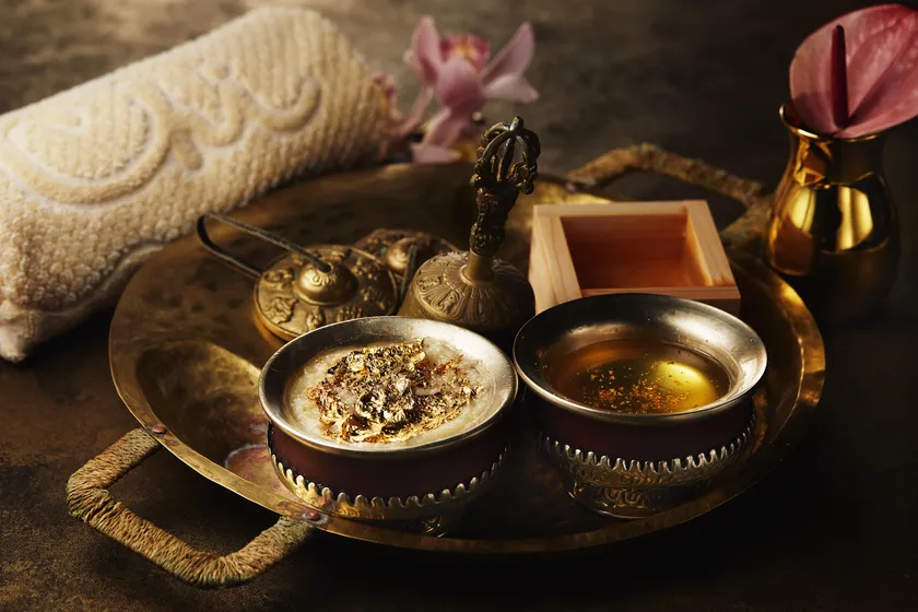 50周年を記念した、金箔の持つ力とオールハンドテクニックに癒される極上のひとととき金をお楽しみいただけるゴージャスなトリートメントをCHIスパにてご用意いたします。日本酒を入れたお風呂でからだを温めてから、金箔ボディスクラブでをお肌をなめらかにし、仕上げに金箔をふんだんに使ったボディオイルトリートメントでじっくりと筋肉の緊張をやわらげます。金箔には美白効果や体を癒すリラックス効果があると言われています。