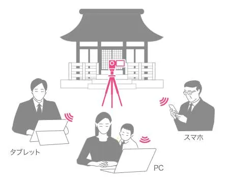 日比谷花壇では2020年5月1日より、葬儀に参列が叶わない一部の方に向けて、YouTube Live配信を通じた葬儀の無料中継サービスを提供していますが、このたび提供を開始する「リモート葬儀」は、参列する全員がPCやスマートフォンからZoomを通じてアクセスするもので、お寺の本堂で導師に読経(浄土宗に対応。その他の宗派は要相談)をしていただく様子を視聴し、焼香、弔電の読み上げや喪主挨拶といった通常の葬儀同様の流れに参加するものです。Zoomを利用することにより、参列者の映像や声も届き、直接会うことが叶わない状況下でも式場から葬儀を一方通行で配信するのではなく、一堂に会しているかのような双方向型の葬儀を実現します。「リモート葬儀」では参列した方が不安なく、葬儀に臨んでいただけるように専任の司会進行役が中継をサポートし、配信オペレーターも1名専属します。葬儀では、お客様から提供いただく写真などをもとに故人との思い出を偲ぶスライドを用意し、参列者と思い出を語り合っていただけます。また、喪主の家に花を届けたい、参列者に返礼品やお食事を届けたい、といった通常の葬儀で行われるサービスにも柔軟にオプションサービスとして対応します。