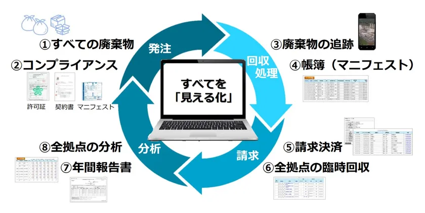 グリーナー独自の「見える化」手法により、廃棄物の削減、リサイクル率の向上、CO2の削減など、排出企業がエミッション・コントロールに取り組むためのASP(※)サービスです。使いやすさ&わかりやすさを極限まで追求しているため、廃棄物に詳しくない排出企業から、廃棄物のプロの管理業者まで、幅広いユーザーの細かな要望に応え、廃棄物におけるコンプライアンスの実現・省力化の好循環化を生み出します。