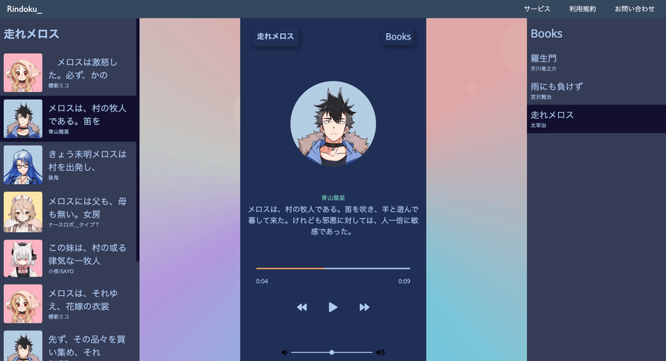 ずんだもんをはじめとする個性豊かなキャラクターが青空文庫の文学作品を順番に朗読していくスタイルを採用。一人の声だけでなく、複数の声で物語が進行していく新鮮な体験を提供しています。