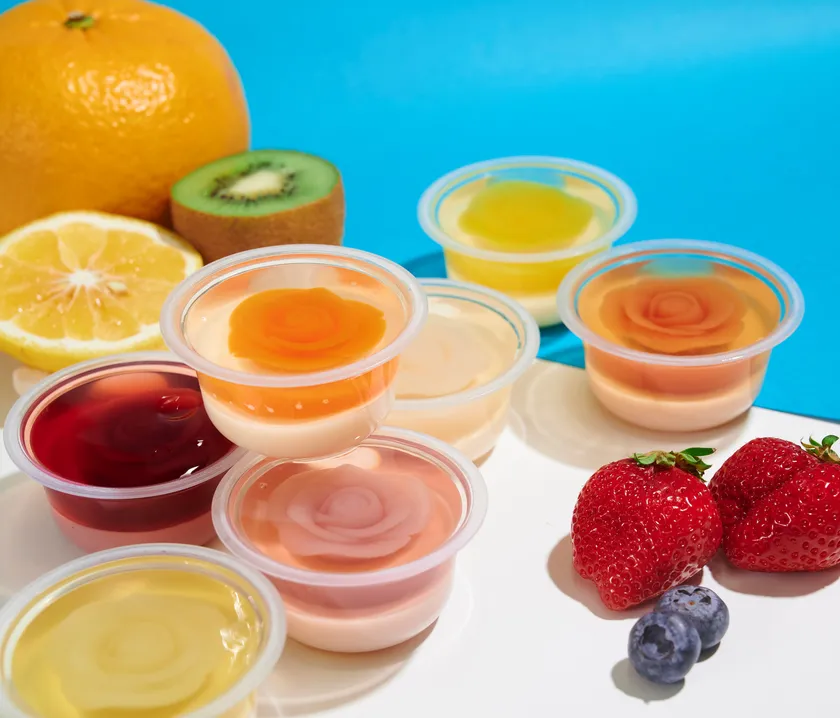 ●つるっ、ぷりっ、ふわっ、と3つの食感が楽しいフルーツゼリー