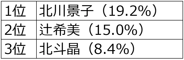 1位:北川景子 2位:辻希美 3位:北斗晶