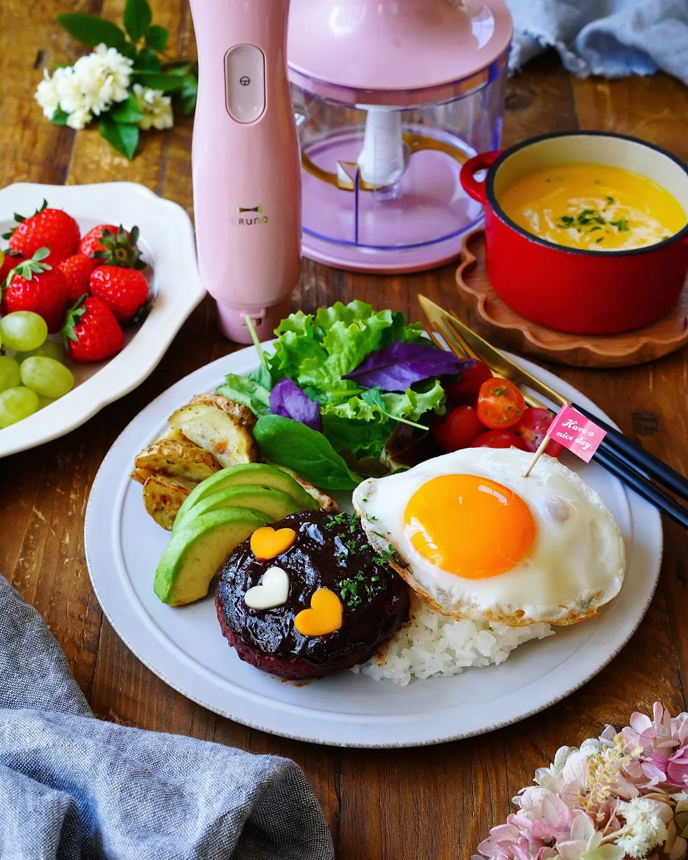 料理や離乳食づくりはもちろんのこと、出産祝いにもピッタリなBRUNOの「マルチスティックブレンダー」。今回、先輩ママ代表として、人気料理インスタグラマーの「こころのたね(kokoronotane)」さんと「あや(aya_m08)」さんに、「マルチスティックブレンダー」を活用したオリジナルレシピを考案していただきました。子供たちも大好きなハンバーグのみじん切り工程を大幅に短縮できるハンバーグを使った「ロコモコ」や、混ぜるだけで簡単に出来る「レアチーズケーキ」、とすぐにでも試してみたくなるアイディアレシピをぜひご覧ください。