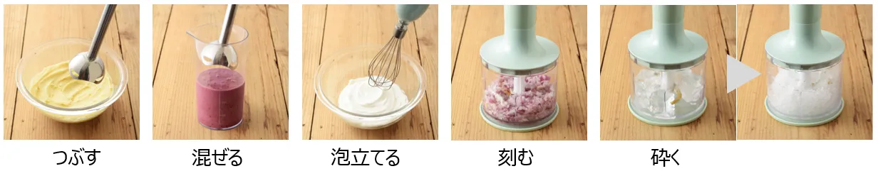 3種類のアタッチメントを付け替えて毎日のお料理をサポート
