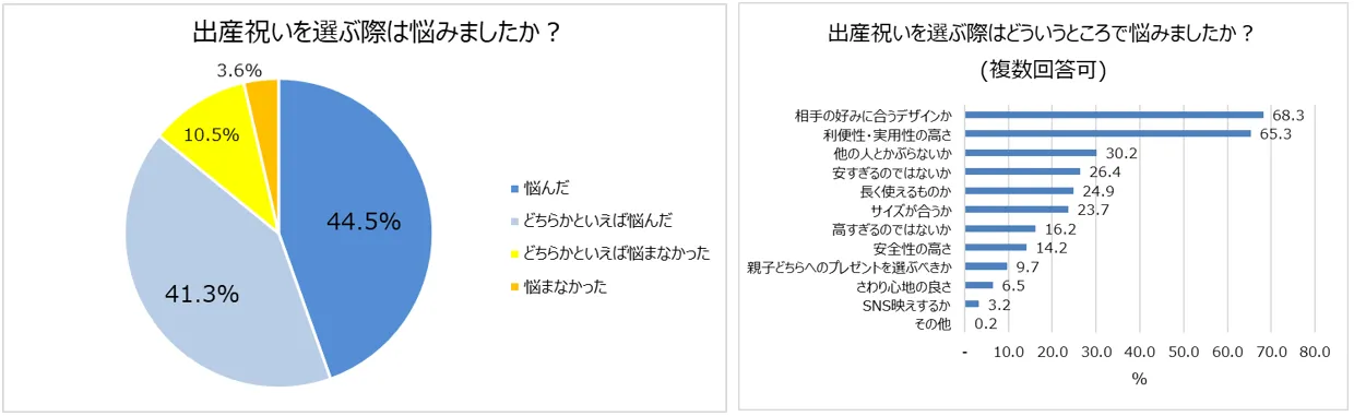 2.出産祝いで悩んだ経験のある人85.8%。重視するのは「デザイン」「利便性・実用性」
