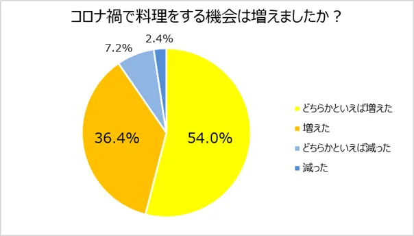 コロナで料理をする機会「増えた(36.4%)」「どちらかといえば増えた(54.0%)」