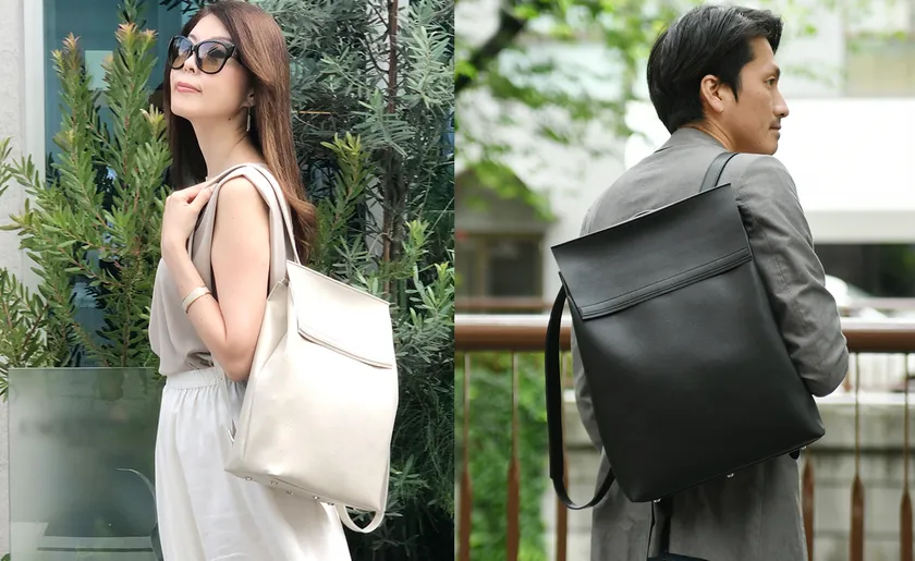 全国の男女を対象に行った“理想のリュックアンケート”の声を元に開発。日本の職人が作り上げた「理想の超軽量リュック」(重さ約550g)を実現しました。PCやスマホが出し入れしやすく、リュックからショルダーへの切り替えも簡単にでき、超軽量・収納力・丈夫さ・耐水性・防汚性の全てを満たしています。