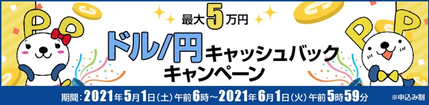 FXプライムbyGMO、 【最大5万円】ドル/円キャッシュバックキャンペーンを5月も実施!