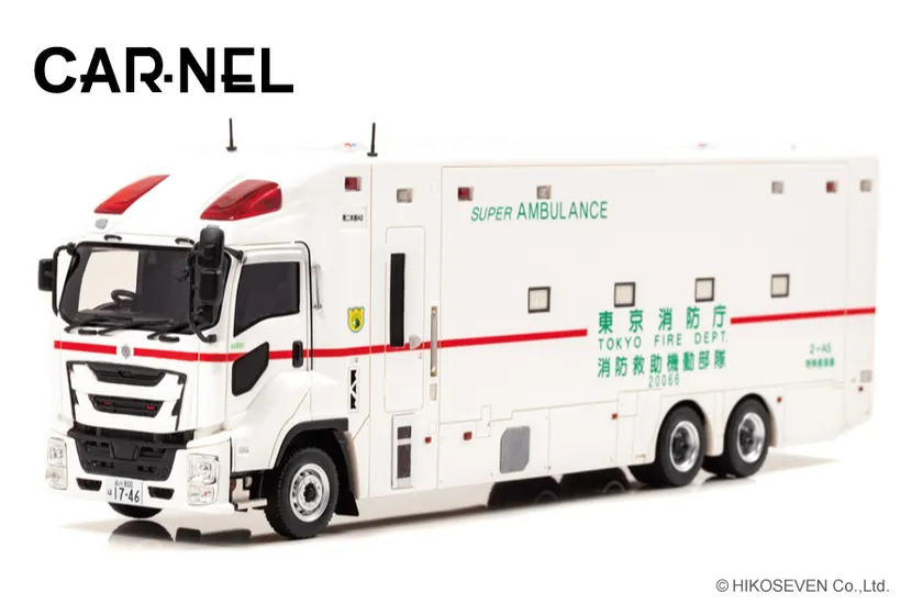 株式会社ヒコセブン(所在地:神奈川県横浜市、代表取締役:原島 行雄)は、オリジナルブランド「CARNEL」からレジン製1/43スケール(約28cm)、いすゞ ギガ 2018 東京消防庁消防救助機動部隊特殊救急車 スーパーアンビュランスを2021年5月7日より直営店の「モデルギャラリーHIKO7」及び全国模型店にて予約開始致しました。