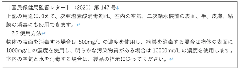 2) 中国においては、次亜塩素酸水が室内の空気の消毒に使用できることが、正式に認められています。(「国民保健局監督レター」(2020)第147号)