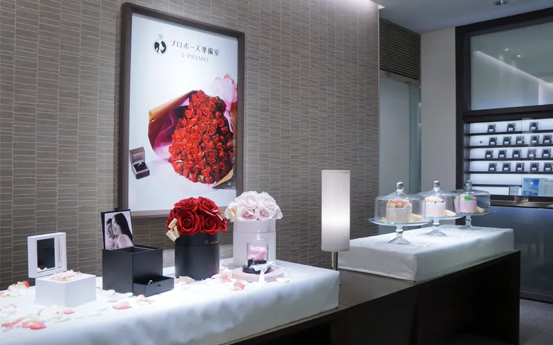 ブライダルジュエリーの企画・販売を行うプリモ・ジャパン株式会社が運営するブライダルリング専門店「I-PRIMO(アイプリモ)」では、人生で一度の特別なプロポーズをサポートする『プロポーズサロン』を4月29日(木・祝)にオープンいたしました。サロンはアイプリモ銀座本店の3Fに構え、アイプリモオリジナルのプロポーズアイテムが並びます。レストランやご自宅での演出、チャペルとのコラボレーションしたプランなど、おふたりにぴったりなシチュエーションをアイプリモのプロポーズコンシェルジェがご紹介いたします。プロポーズに心弾ませながらも悩みや不安を抱えているお客さまに、安心してその日を迎えていただけるトータルサポートいたします。