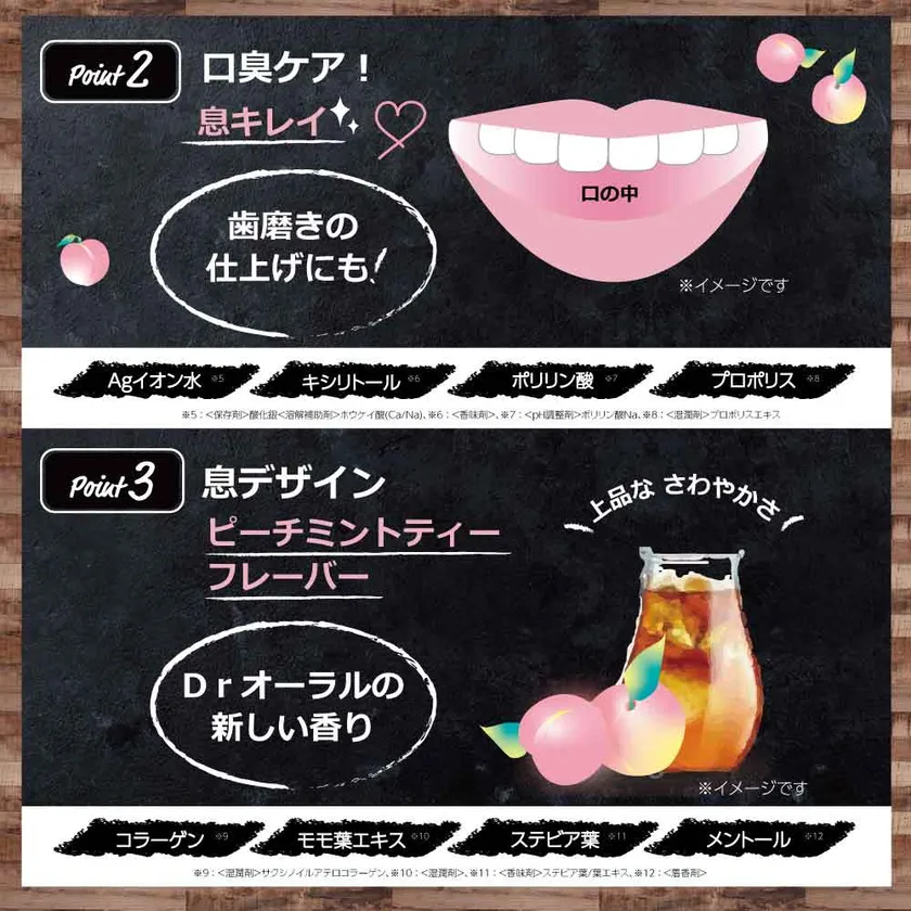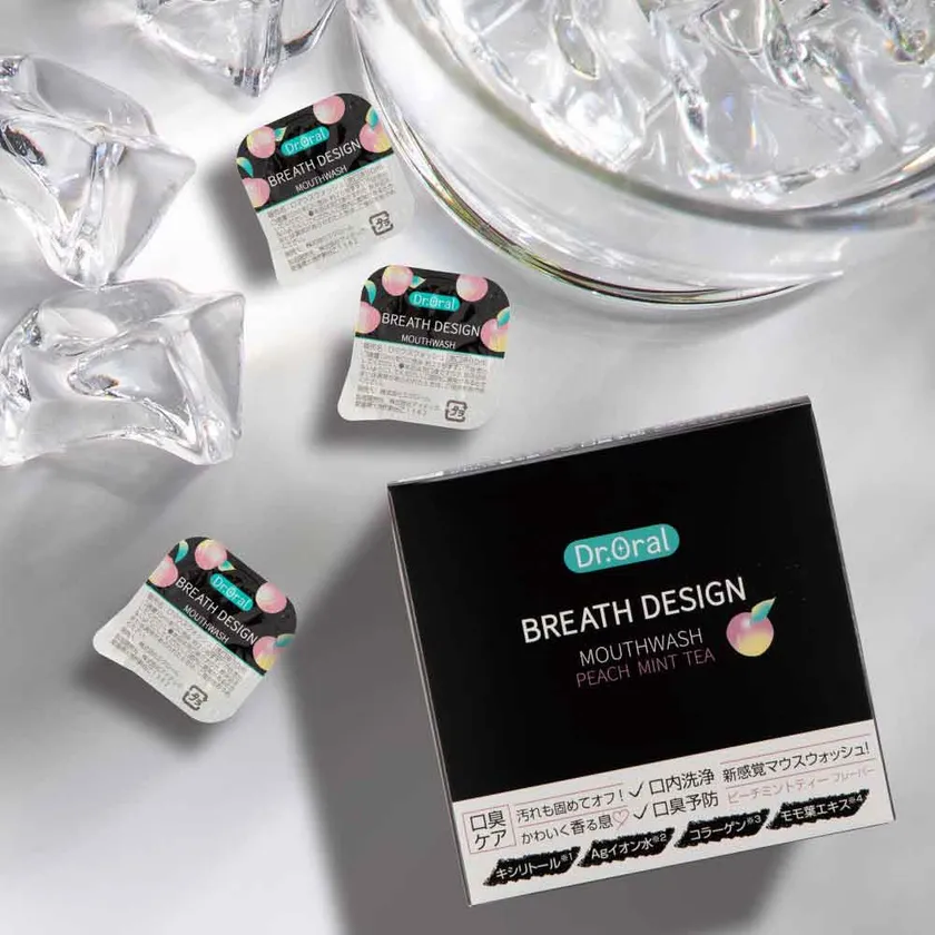 オーラルケアブランド「ドクターオーラル」よりお届けする、「ブレスデザイン」は歯磨きの仕上げにもピッタリな、息をデザインする新感覚マウスウォッシュ(洗口液)です。ドクターオーラルの新しい香り「ピーチミントティーフレーバー」もオススメ。新感覚オーラルケアで、楽しみながら息リフレッシュ。