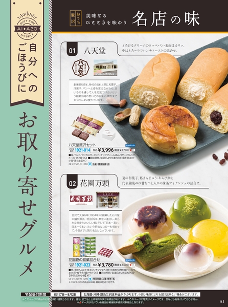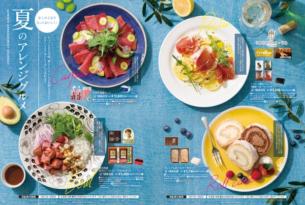 夏の売れ筋商品や人気店のグルメ商品、お手軽グルメ、おうち時間をより楽しめるお取り寄せグルメ等の特集を組み、見ていて楽しいページ構成に仕上げました。