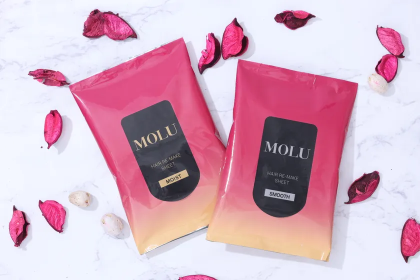 そんなお悩みを解決するために美容メーカー株式会社ブリアンジェの女性社員達のアイディアを結集し、生まれたのが【MOLUヘアリセットシート】です。ちなみに、MOLU(モル)は「モバイルするLULU(訳:素晴らしいもの)」、「盛る(=美しくする)」というコンセプトから名付けられました。